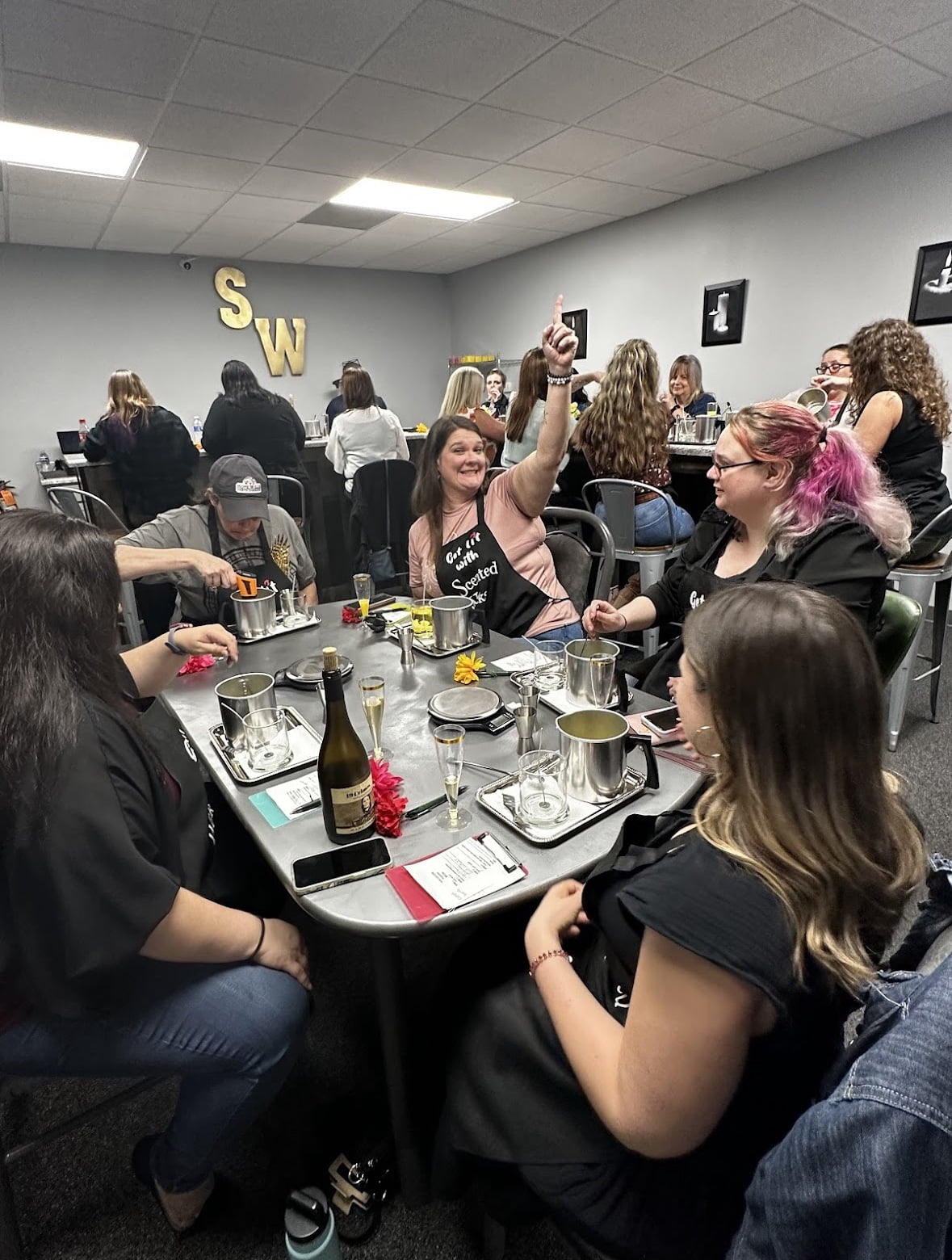 Looking for the perfect group activity? Look no further, Scented Wicks Candle Bar offers groups of 10 or more private classes. During this 2-hour session, the candle bar will be closed to the public. The group is allowed to bring their own finger food items. Please contact us by phone or e-mail to schedule your group booking.